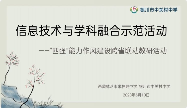 聚焦融合,千里联动。为促进信息化带动区域教育优质均衡发展,达成区域间教学联动,共享优质教学资源,2023年6月13日上午,银川市中关村中学携手西藏林芝市米林县中学举行了跨省线上联合教研活动。本次活动利用信息技术开展两地共研一堂课,我校鲁立立老师和外校米红霞,杨晶老师在银川市中关村中学现场授课,米林中学三位老师在云端课堂辅助授课,共同完成了三节精彩纷呈的课堂。我校高度重视本次教研成长活动,学校领导以及数学、语文、道法教研组相关学科教师参加此次活动。