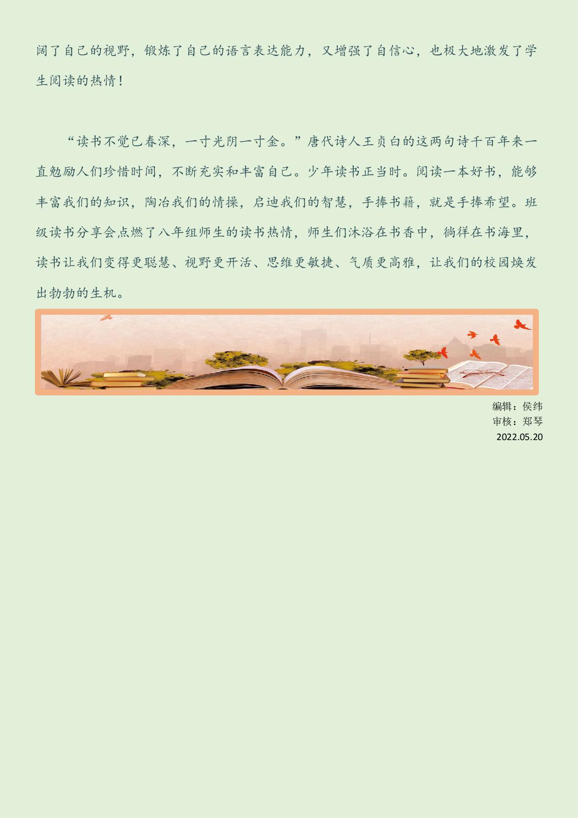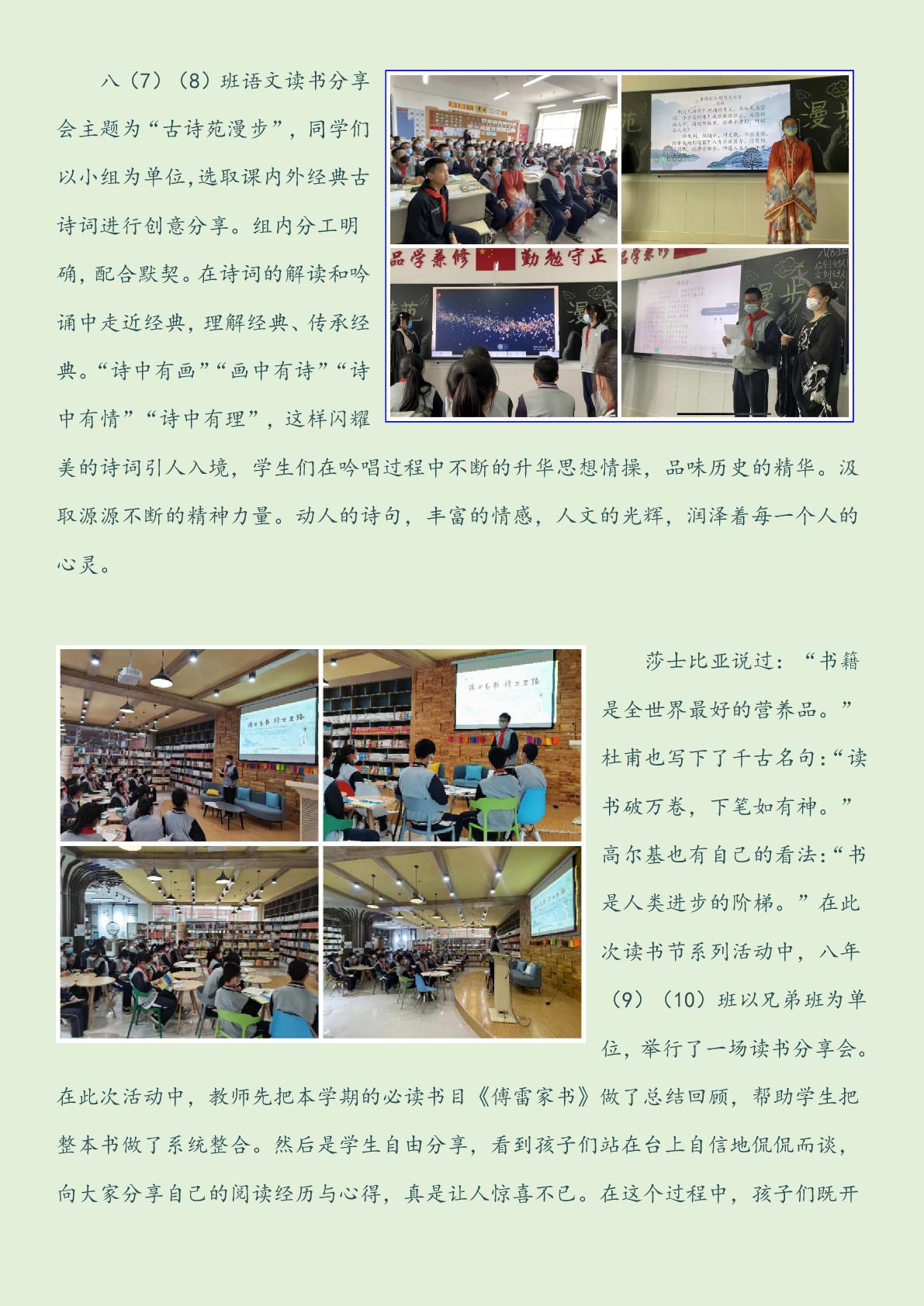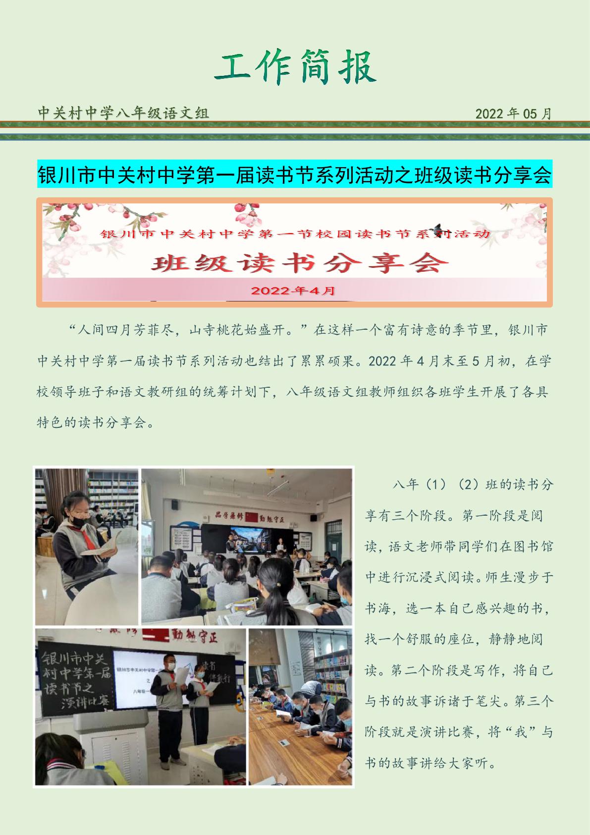 中关村中学首届读书节之班级读书分享会简报